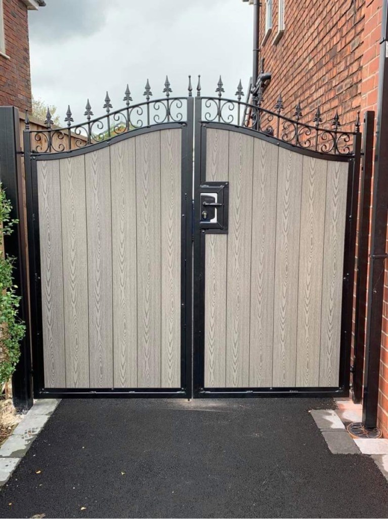 We use composite board infil panels, set within a steel frame. These give a virtually maintenance free option to wood, and are available in a range of colours/finishes.